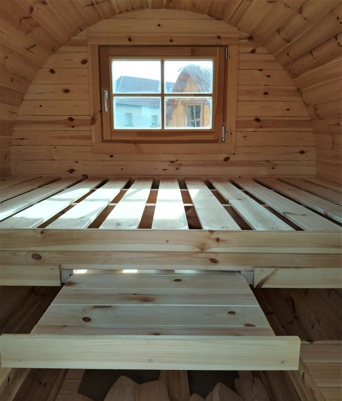 Découvrez le Glamping 240, cosy et original. Ses ouvertures vitrées vous permettent de profiter du paysage et de la luminosité tout au long de la journée. Vendu équipé d'un sommier double, d'une tablette coulissante, et de 2 petits bancs en bois, à vous de définir la fonction du vôtre : chambre d’ami, chambre d’hôtes, hébergement insolite pour camping,